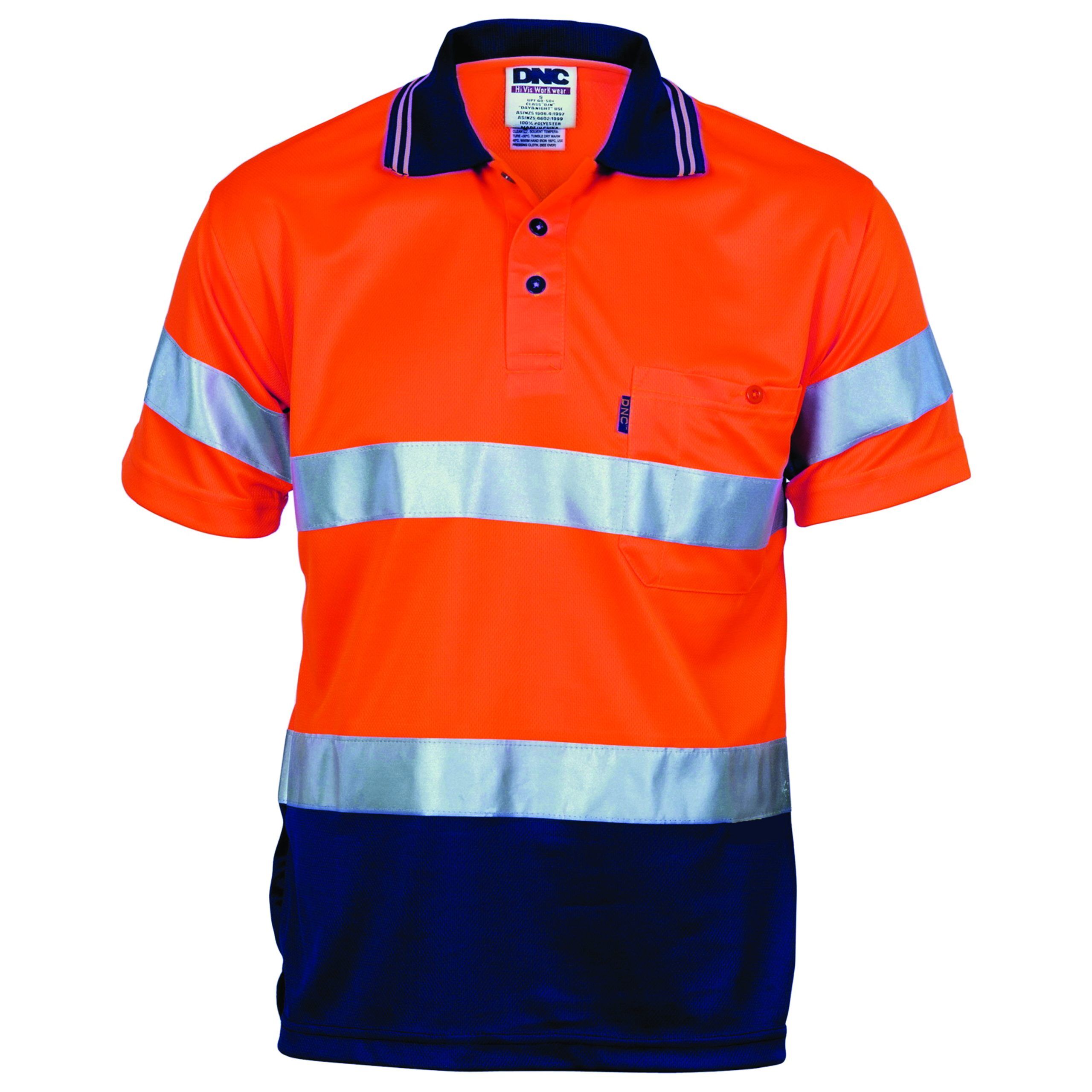 DNC Workwear – DNC-3715 – HiVis D/D Cool Breathe Polo Shirt With CSR R/Tape – Short Sleeve