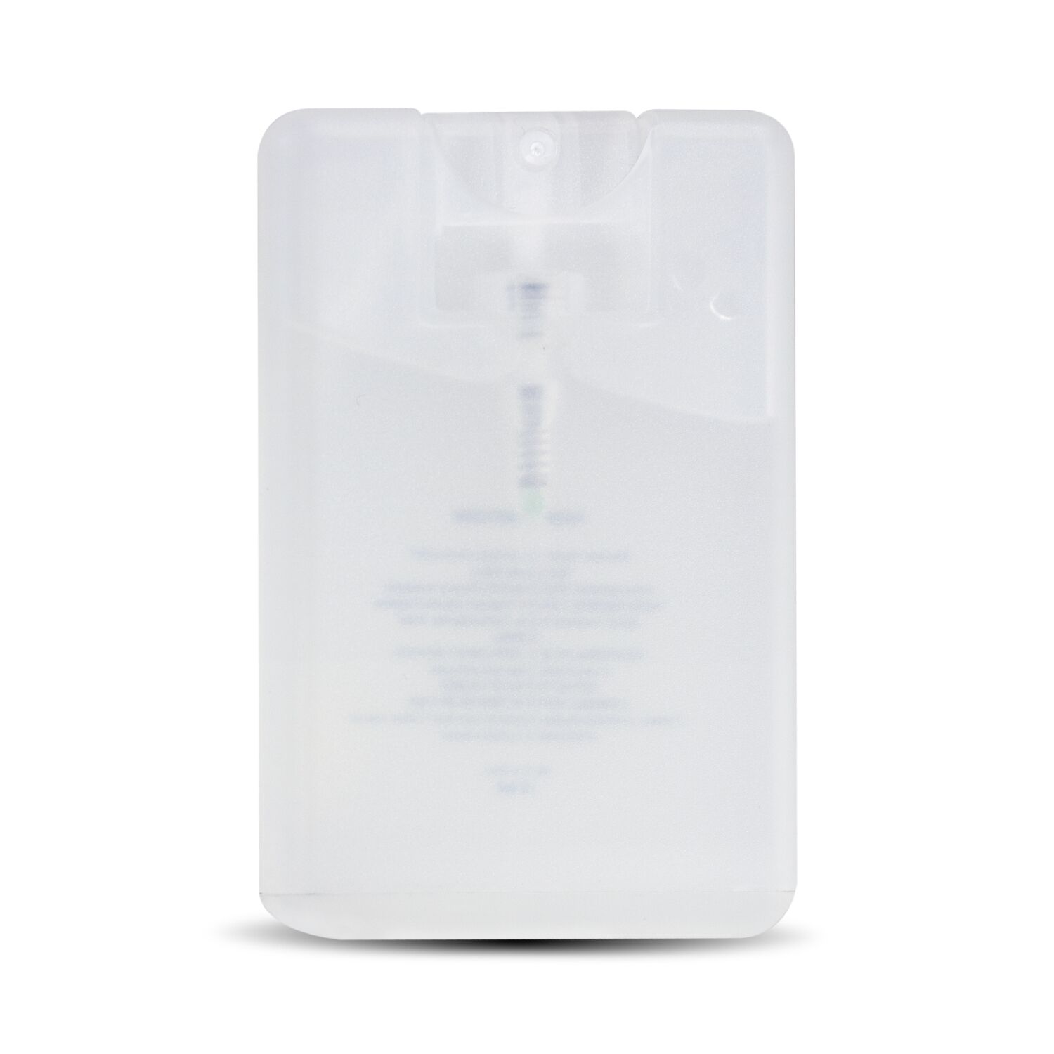 Unique 20ml credit card shaped, pump action hand sanitiser. It has a large branding area on the front with full ingredient information printed on the back.