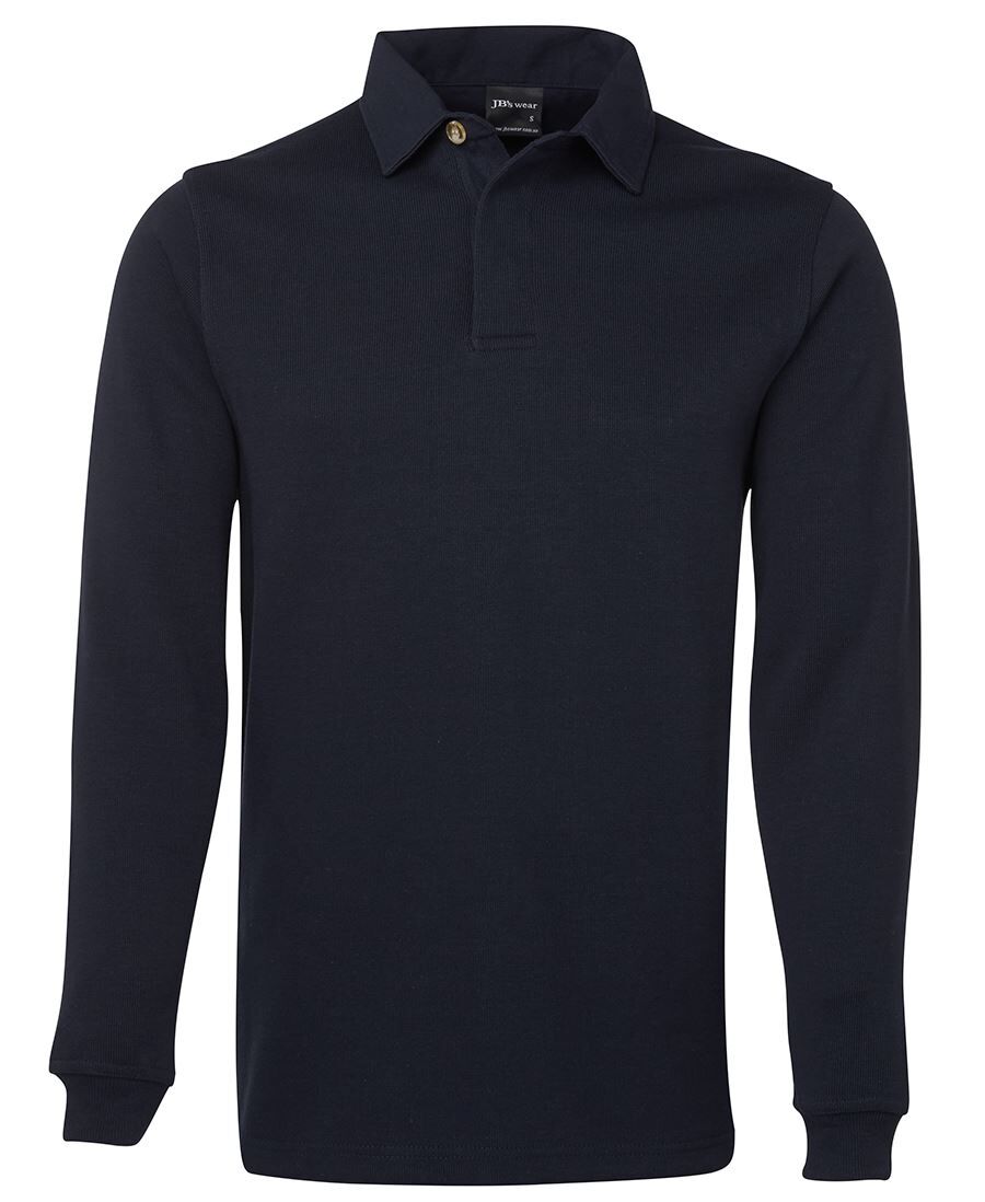 Classic fit | 65% Polyester for durability, and 35% Cotton for comfort | 350gsm rugby knit fabric | Internal contrast woven back neck dome | Straight hem with herringbone trimmed side splits | Rib cuffs | JB’s concealed 3-button placket