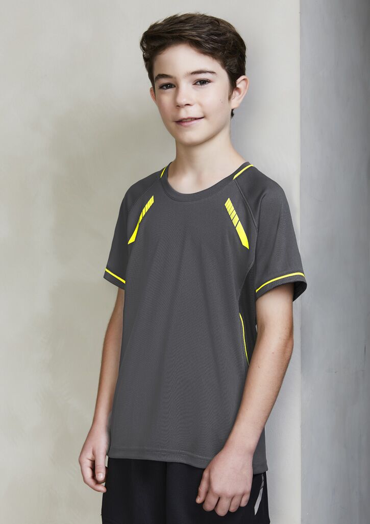Sizes: 4 – 16; Extras: ; Fabric: 100% BIZ COOL Micro Polyester,155 GSM,UPF rating – Excellent; Features: Silver reflective trims help you stand out,Dynamic design with bold colour contrast,Mesh panels for greater ventilation where you need it most,Comfortable crew neck,Raglan sleeve allows better range of movement;