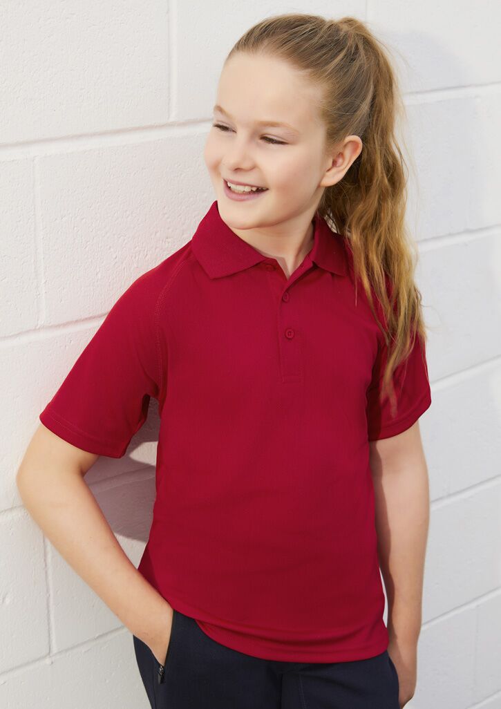 Sizes: 4 – 16; Extras: ; Fabric: BIZ COOL 100% Breathable Polyester,New generation mesh,145 GSM,UPF 50+; Features: Matching knitted collar,Durable flat lock raglan armhole;