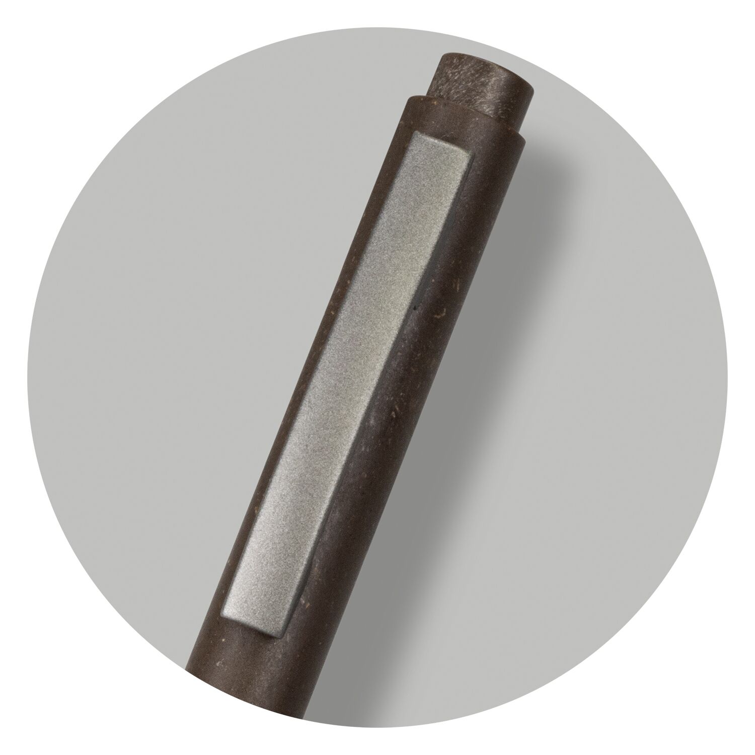 Environmentally conscious retractable ballpoint pen that uses a unique 60/40 blend of polypropylene and coffee ground in the barrel construction. It has a large volume refill with 1200m of black German manufactured Dokumental ink and has matte gunmetal trim. The pen can be presented in an optional pen sleeve.