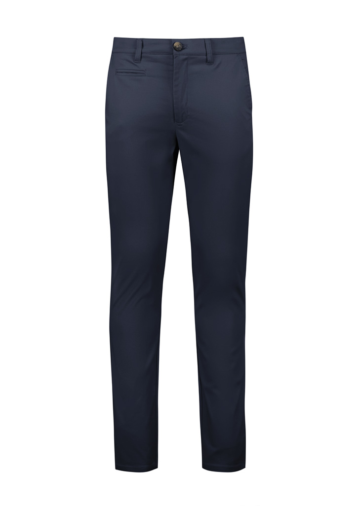 Sizes: 72 – 127. (AUS/NZ); Fabric: Main: 97% Cotton 3% Elastane, Trims: 100% Cotton Chambray.,Premium stretch chino range, in a comfortable and easy-care fabric.,Soft peached hand feel.,Wash before wearing, machine wash cold, inside out with like colours.,Do not bleach, hang to dry in shade.,Can be tumble dried on low.,Cool iron.,Dry cleanable (P).; Features: Designed to sit on the waist, straighter cut through the thigh and leg with a regular leg opening.,Features 2 back pockets, 2 side pockets and belt loops.,Centre back seam allowance for easy alterations .,Fabric has added stretch for comfort and easy movement.;