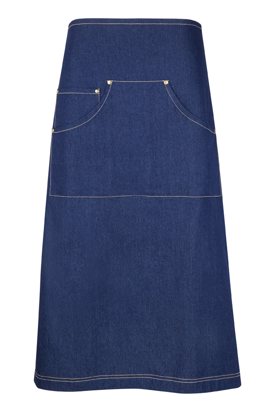 220 gsm 75% cotton 25% polyester denim Kangaroo pocket X shape Strap with brass buckle specifications: 70 cm wide x 82 cm tall