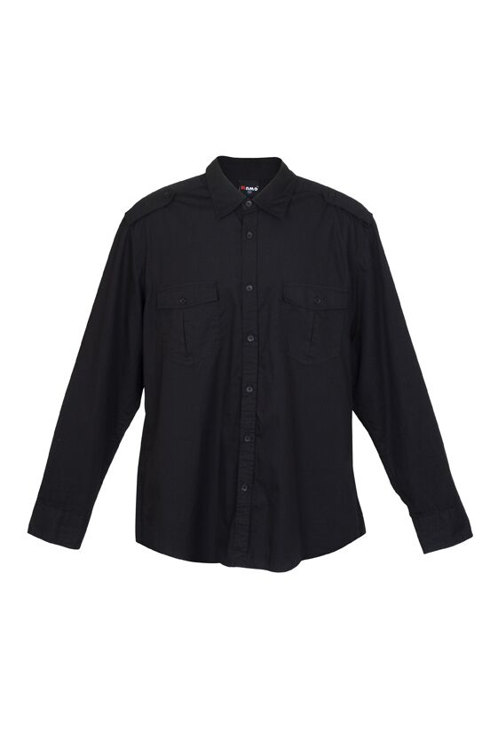 100% cotton Military styled shirts removable epaulettes on shoulder buttoned flaps to support rolled up sleeves enzyme washed Long sleeve