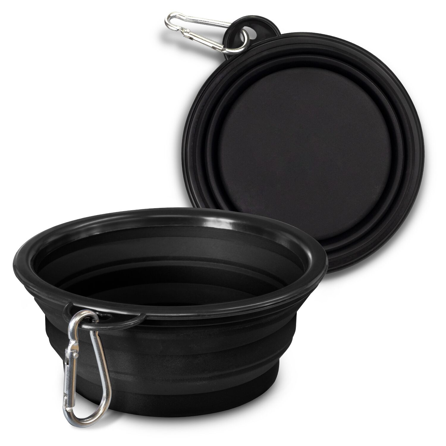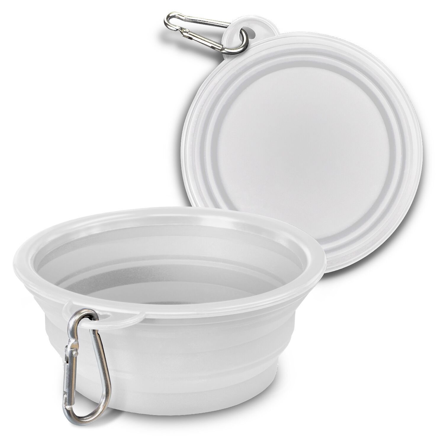 Handy collapsible silicone pet bowl featuring a carabiner available in 5 different colours. This bowl is portable and easy to store, you can ensure your pet stays hydrated anytime and anywhere. A production lead time of 25 working days applies to this product.