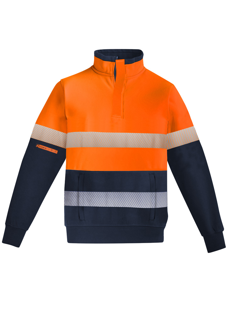 Syzmik – ZT150 – Mens Orange Flame Hi Vis 1/4 Zip Brushed Fleece Pullover – Hoop Taped