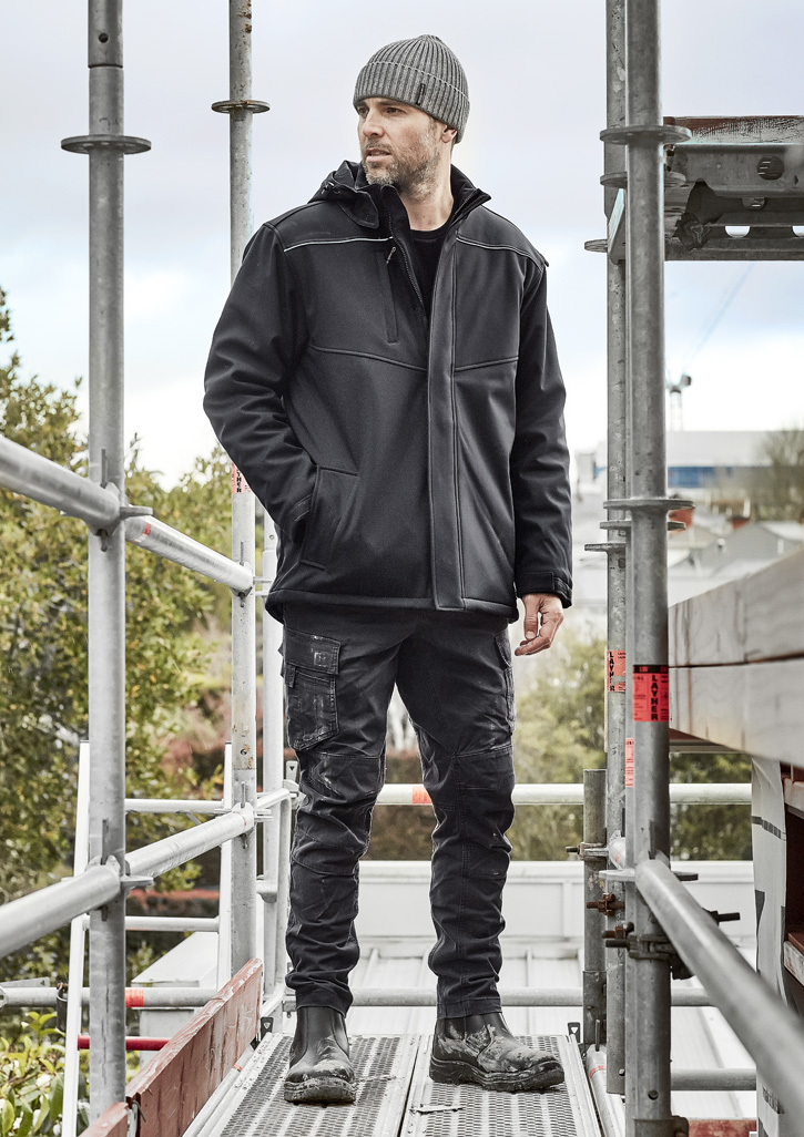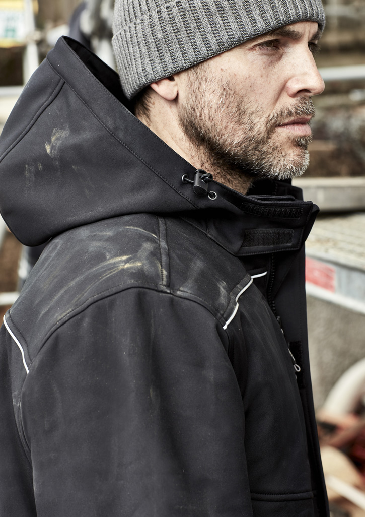 Sizes: XXS – 5XL, 7XL; Fabric: 100% Oxford Bonded Polyester Softshell – 330 gsm; Features: Extremely warm quilted lining,Longer length for warmth and protection in cold conditions,Zip off hood,Two hand warmer pockets with thick fleece lining,Two zip closure hip pockets to safely store all your items,One zip chest pocket,Storm flap closure over centre front zipper,Quick close tape adjusters on the cuff to help keep the elements out,5,000mm Water resistant rating;