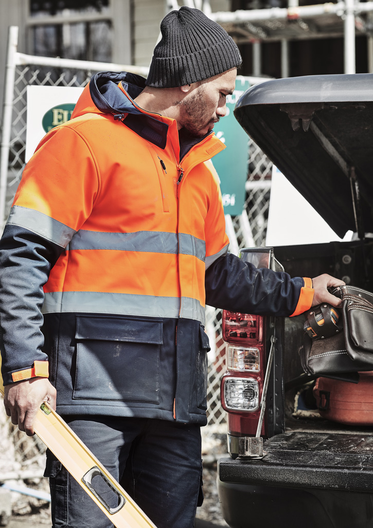 Sizes: XXS – 5XL, 7XL; Fabric: 100% Oxford Bonded Polyester Softshell – 330 gsm; Features: Extremely warm quilted lining,Longer length for warmth and protection in cold conditions,Zip off hood,Two hand warmer pockets with thick fleece lining,Two patch pockets with flap closure to keep all your items safe,One zip chest pocket,Storm flap closure over centre front zipper,Quick close tape adjusters on the cuff to help keep the elements out,5,000mm Water resistant rating;