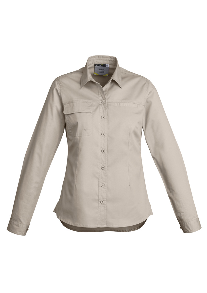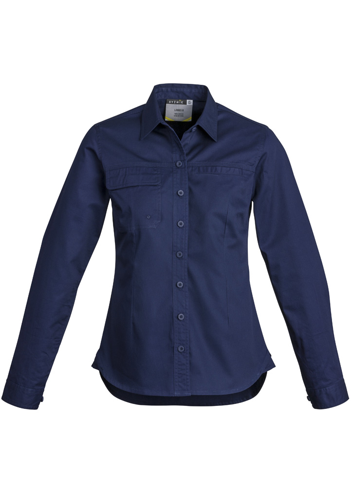 Sizes: 8 – 24; Fabric: 100% Cotton Twill, 145 GSM; Features: 145 GSM Lightweight cotton twill to keep you cool in the hottest environments, Triple stitched seams, 1 Button flap pocket and one welt pocket on chest, Underarm vent eyelets, Darted for feminine fit, Extended curve shirt back and curved side insert hem detail with bar-tack, Centre back yoke pleat;