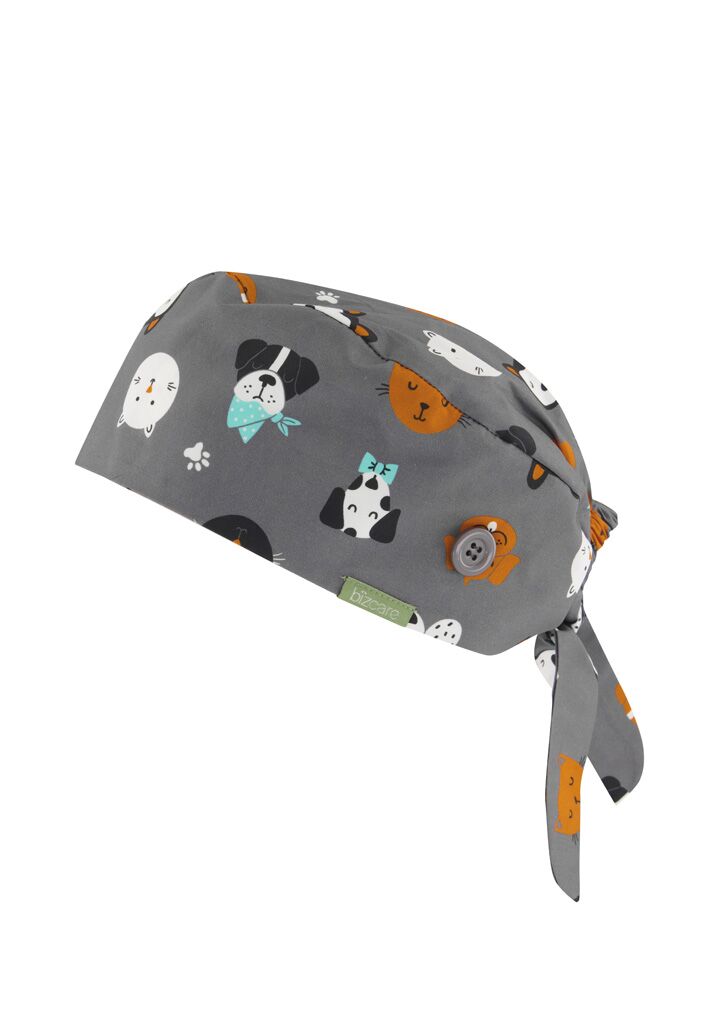Cares: Gentle machine wash. Wash with similar colours.,Do not bleach or soak.,Tumble dry on low or line dry in shade.; Sizes: One Size, fits head diameter of approx. 62cm, including bun tied below crown of head.; Fabric: 100% Cotton.; Features: Made from soft and breathable 100% cotton.,Featuring elastic back and tie, designed to stretch easily over buns.,Side buttons for your mask.;