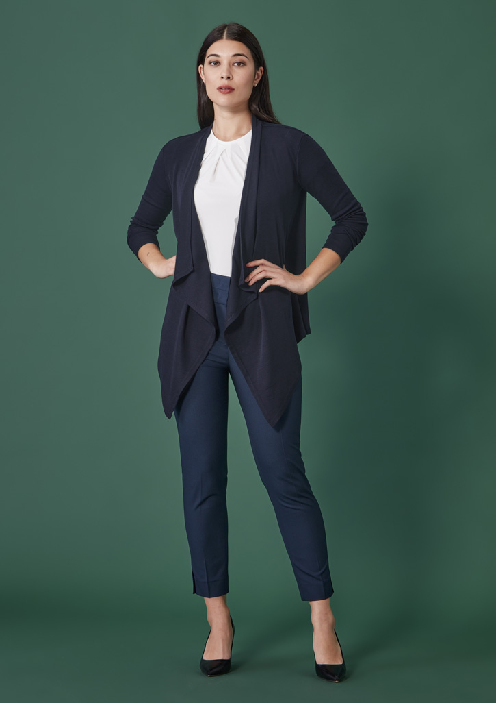 Sizes: 4 – 22; Fabric: Renew Suiting: 77% Recycled Polyester, 20% Viscose, 3% Elastane; A lightweight fabric that’s engineered to be an easy-care, machine wash-and-wear fabric with minimal creasing. Made for ease and versatility for when you are on the go. A conscious product choice, with 77% made from post-consumer recycled polyester. ; Features: Designed to sit mid waist, 7/8 Length with hem side splits, 2 Inseam pockets, eliminates any gaping, 2 Functional jet pockets on back for design, Zip fly, with hook and eye closures, No hem allowance;